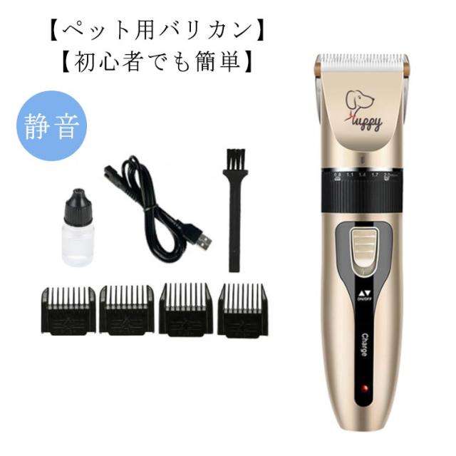 | 【ペット用バリカン】【初心者でも簡単】【静音】 ペットをびっくりさせない静音設計です! 充電すればコード不要だから、庭や玄関などでも使えて便利です。 セットのアタッチメントが豊富で微調節も簡単♪お好みのトリミングができます。 こだわりのトリミングから初心者まで、簡単に使いこなせるように考えられています。 4つの長さのアタッチメントが付属。小型犬や猫から、大型犬まで1台でカットできちゃいます。 ヘッド部分は取り外しが簡単なので、ペット用のバリカンでも水洗いができます。いつでも清潔な状態に保てて衛生的です! 本格的なセラミックチタン製のバリカン刃なので、スパッと切れてスムーズに進みます。 重さも293gと軽く、持ち手が握りやすいので女性でも扱いやすい!軽くてコンパクトだから、ペットの耳など顔や足裏なども自由自在です。 | |