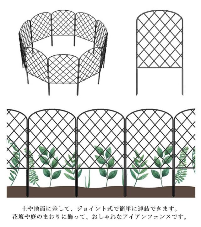 6枚セット アイアンフェンス 花壇フェンス ガーデンフェンス スチールフェンス 柵 おしゃれ 差し込み 屋外 ガーデニング 庭 エクステリア 仕切り 簡単設置 黒 ブラック イージーフェンス ゲート ベランダ DIY お手軽 ガーデンエッジ 花壇 鉄 土留め 目隠し