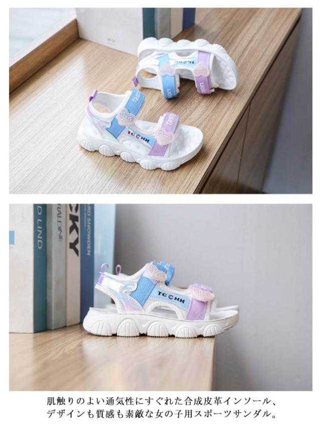 子供 スポーツサンダル キッズ 女の子 サンダル スポサン ビーチサンダル ジュニア 16.5-22cm 子供靴 軽量 可愛い ハート ベルクロ ストラップサンダル 柔らかい 通学 通園 10代 姫系 厚底 サンダル