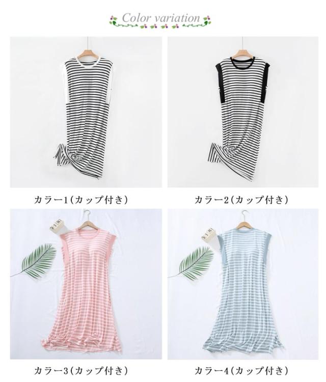 カップ付きワンピース レディース カップ付き ロングワンピース ワンマイルウェア ルームワンピース 部屋着 ノースリーブ ボーダー Tシャツワンピース 20代30代 40代 パジャマ 春夏 ナイトウェア リラックスウェア