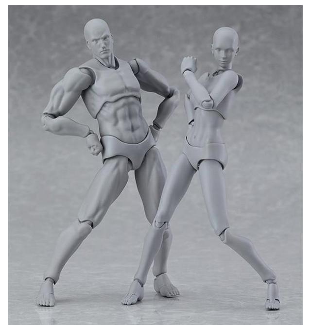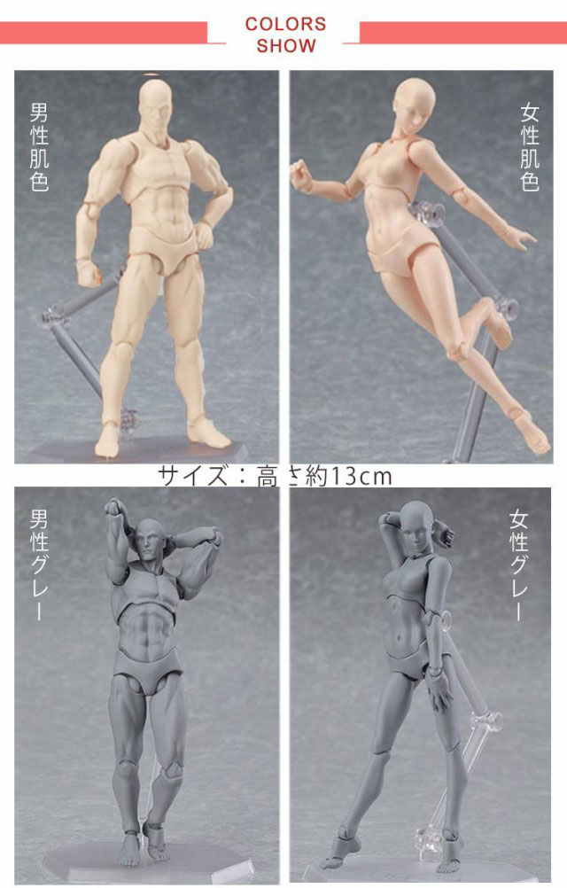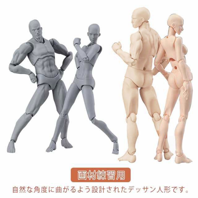 デッサン人形 デッサンモデル モデル人形 男 女 デッサンドール フィギュア 漫画 キャラクター イラスト 作画 ドールタイプ 練習 デッサン 模型 小道具 スタンド付き 画材練習用 男性 女性 肌色 グレー