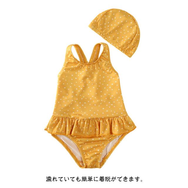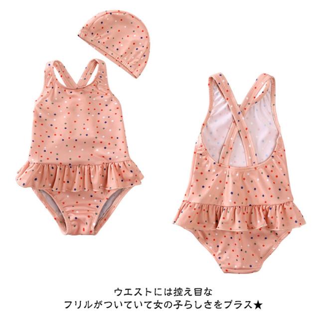 水着 キッズ 女の子 一体型 スイムキャップ付き スイムウェア こども キッズ ラッシュガード 日焼け防止 UVカット SPF50 紫外線防止 幼児 幼稚園 小学生 80cm 90cm 100cm 110cm 120cm 130cm 140cm 可愛い 海 夏休み プール 砂遊び アウトドア おうちプール フリル swimwear