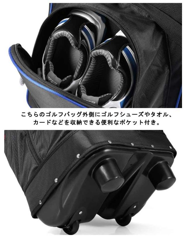 | ゴルフトラベルカバー 旅行などで輸送中のゴルフクラブを摩耗や損傷から保護します。 キャスター付きで持ち運び楽々! 収納袋付きで省すベース。 こちらのゴルフバッグ外側にゴルフシューズやタオル、カードなどを収納できる便利なポケット付き。 運び方2WAY!肩にかけて運んだり、持ち手を持って運ぶことができます。 | |
