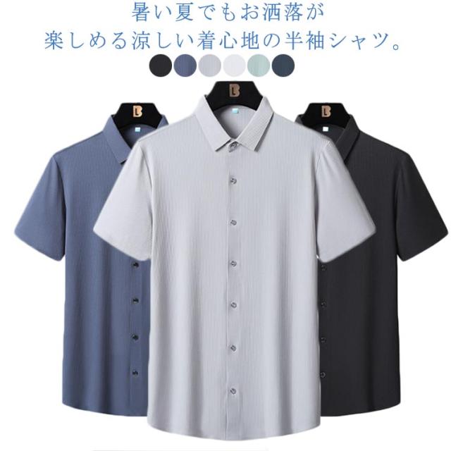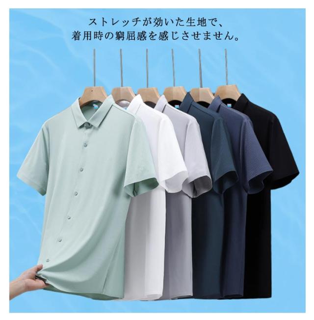 シャツ メンズ 半袖シャツ 涼しい 接触冷感 メンズシャツ 薄手 ストレッチシャツ ひんやり ビジネスシャツ カジュアルシャツ トップス 吸水速乾 通気性 無地 仕事 ビジネス ビジカジ シャツ テレワーク カジュアル 春服 夏服 春 夏 大きいサイズ M-8XL