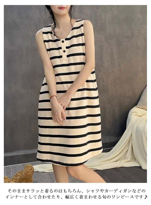 | 外出着としてもおしゃれなカップ付きワンピース。 両サイドにはポケット完備しているから使い勝手抜群! おうち時間やおでかけにも大活躍する、ストレスフリーなカップ付きワンピース。 肌触りのよい綿素材、ストレッチもあり、パジャマとしてもお勧め。 そのままサラッと着るのはもちろん、シャツやカーディガンなどのインナーとして合わせたり、幅広く着まわせる旬のワンピースです♪ | |