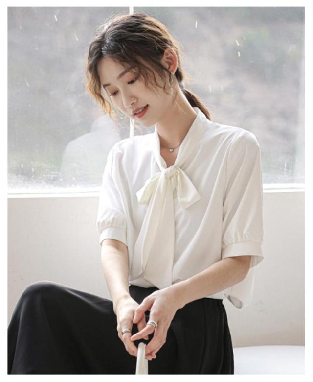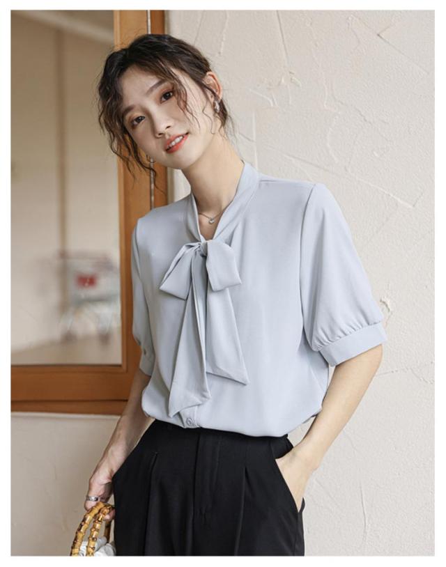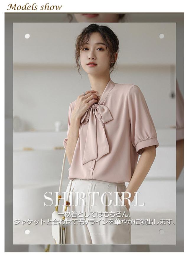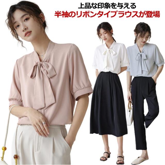 ボウタイ ブラウス 半袖 シャツ オフィス ボウタイ付きブラウス レディース シフォンブラウス リボン 女性 パフスリーブ とろみ 華やか プルオーバー トップス シンプル 通勤 通学 ビジネス カジュアル 上品 きれいめ フォーマル 入学式 卒業式 入園式 卒園式 送料無料