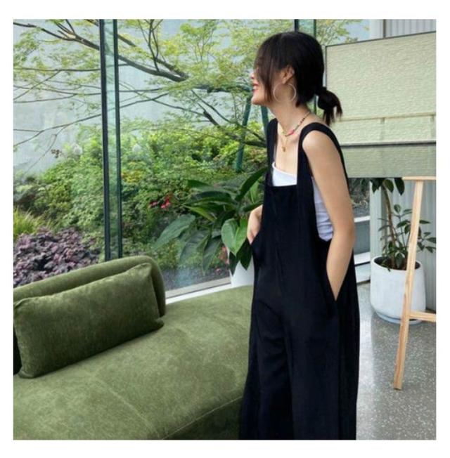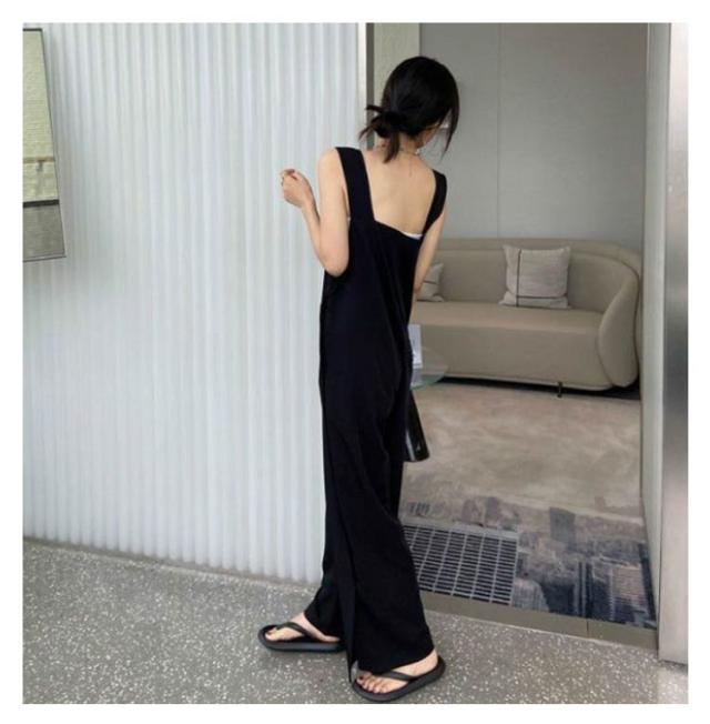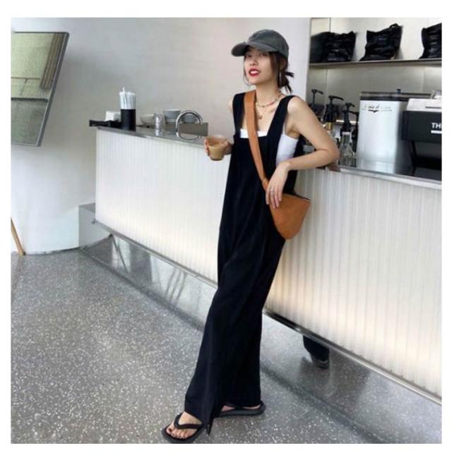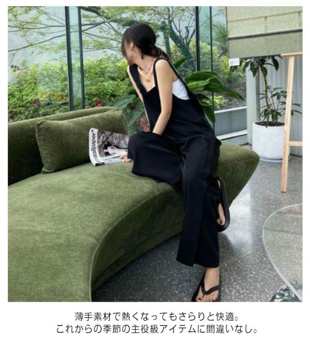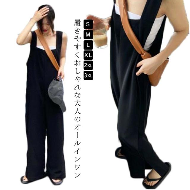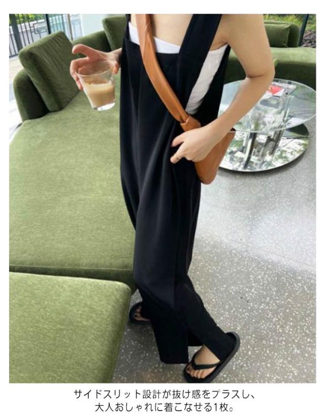 オールインワン サロペット レディース ワイド オールインワン パンツ 薄手 夏 春夏 秋 ストレート オーバーオール 送料無料 韓国ファッション おしゃれ 脚口 スリット スリット入り 20代 30代 40代 カジュアル シンプル 無地 黒