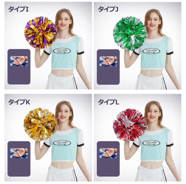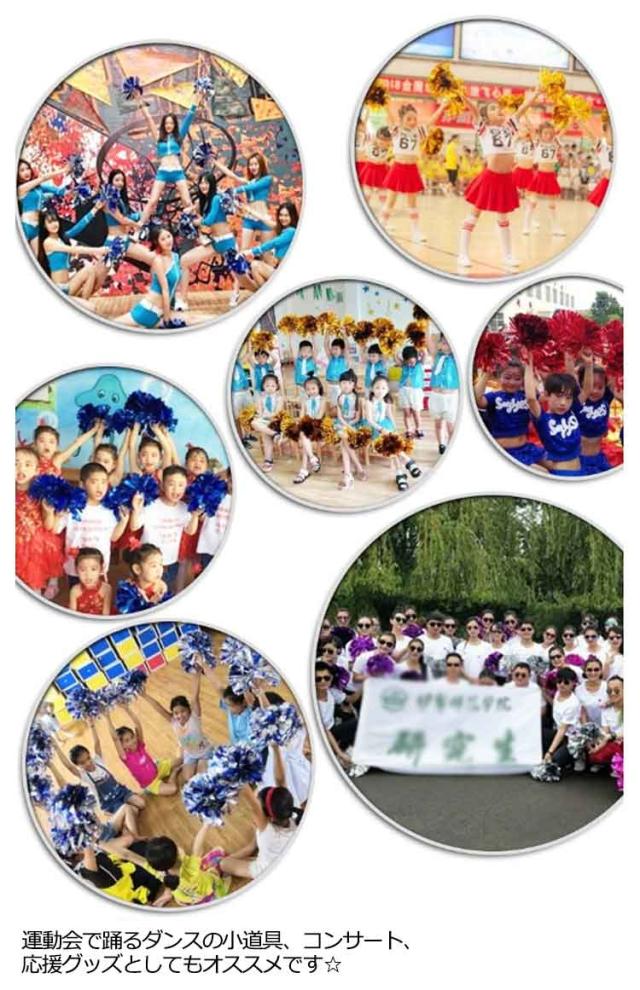 | キラキラでメタリックなポンポンです☆ 同色が10個入った1セットになり、両手に持って使う場合は5人分相当です。 チアダンスの小道具にピッタリなアイテム☆ 手を握して使うなので、楽に使えます☆ 運動会で踊るダンスの小道具、コンサート、応援グッズとしてもオススメです☆ | |