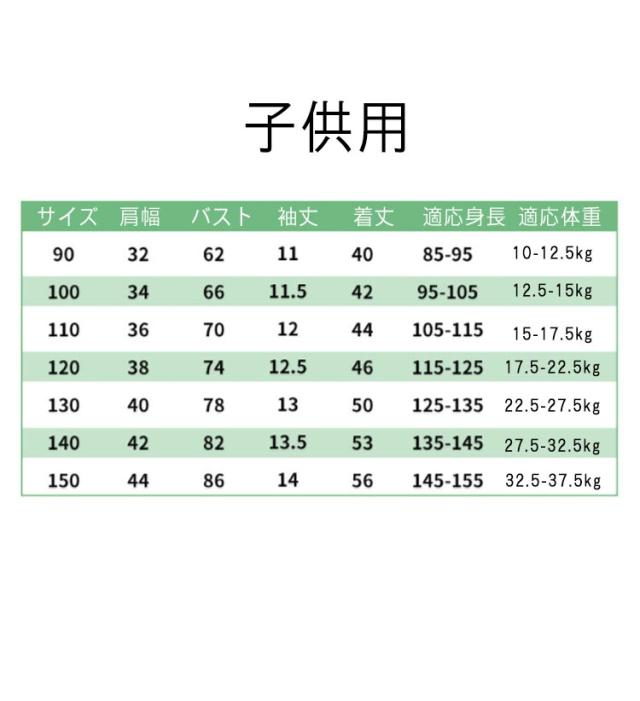 | サイズ | 女の子90cm 女の子100cm 女の子110cm 女の子120cm 女の子130cm 女の子140cm 女の子150cm 男の子90cm 男の子100cm 男の子110cm 男の子120cm 男の子130cm 男の子140cm 男の子150cm |