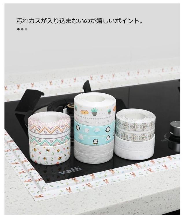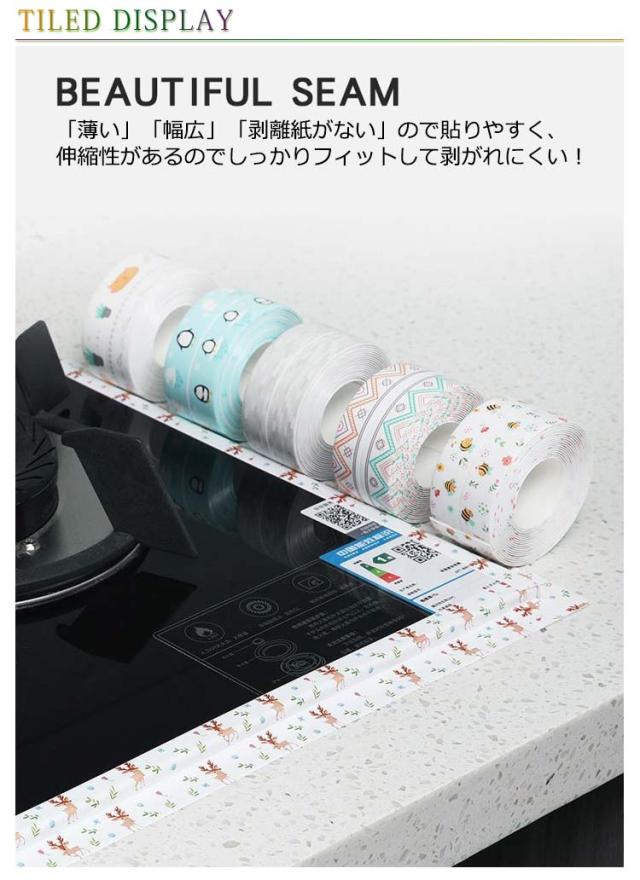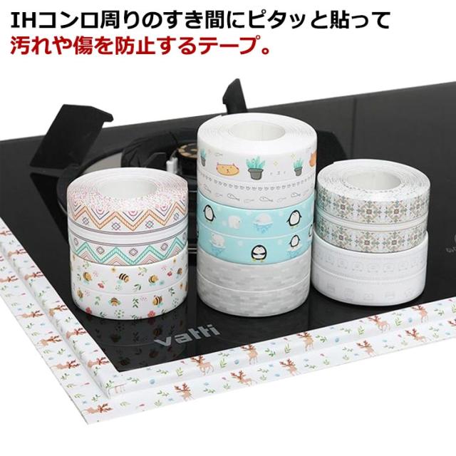 | IHコンロ周りのすき間にピタッと貼って汚れや傷を防止するテープ。 「薄い」「幅広」「剥離紙がない」ので貼りやすく、伸縮性があるのでしっかりフィットして剥がれにくい! 汚れカスが入り込まないのが嬉しいポイント。 はがすだけできれいになるので、キッチン周りをきれいに保つことができます 隙間、お風呂、浴槽、浴室、洗面所、キッチン、トイレ浴槽などのところは防カビテープに任せよう! | |