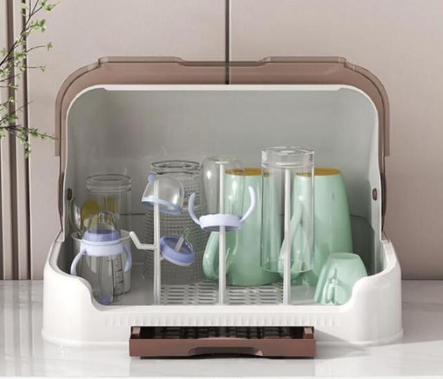 グラススタンド コップスタンド 水切りスタンド グラス コップ カップ 哺乳瓶 収納ボックス 蓋付き 透明 大容量 おしゃれ グラス立て コップ立て 哺乳瓶スタンド 水切りラック グラス乾燥 フタ 哺乳瓶保管ケース コップ収納ケース 水切りケース ほこり防止 防塵 送料無料