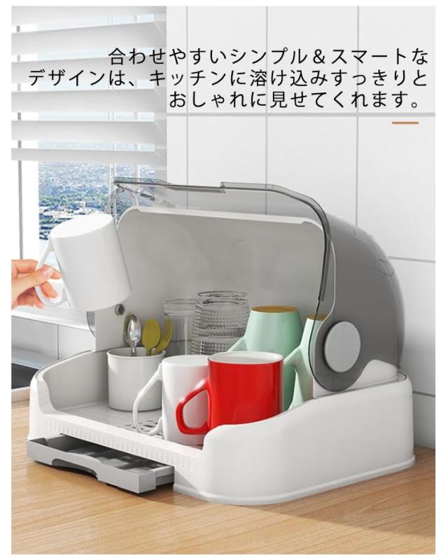 | グラスやコップ、カップ、哺乳瓶の水切り・収納に便利な蓋つきボックスです。 水滴は穴から下部の水受けトレーに落ちる仕組み。トレーは取り外せるので排水も簡単です。 赤ちゃんの哺乳瓶スタンドとしても◎。 ホコリの侵入を防ぐ蓋付きなので衛生的! 合わせやすいシンプル&スマートなデザインは、キッチンに溶け込みすっきりとおしゃれに見せてくれます。 | |