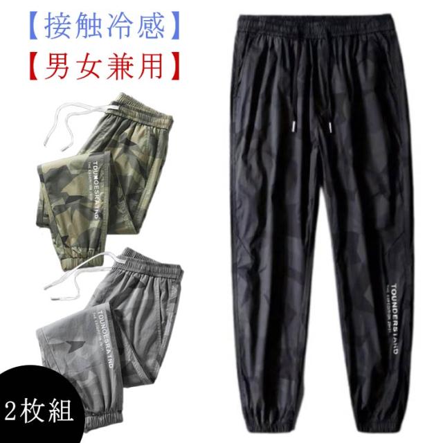 【2枚組】接触冷感 迷彩柄 スキニーパンツ 冷感パンツ メンズ レディース ひんやり 涼しい ロングパンツ イージーパンツ 薄手 ゴルフパンツ ストレートパンツ ゴルフパンツ スリム 夏 春 秋 クール感 大きいサイズ 部屋着 外出着 運動着 イージーパンツ