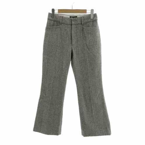 【中古】23区 オンワード樫山 パンツ 裾フレア カシミヤ混 ヘリンボーン 起毛 グレー ホワイト 白 34 レディース