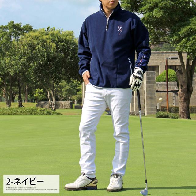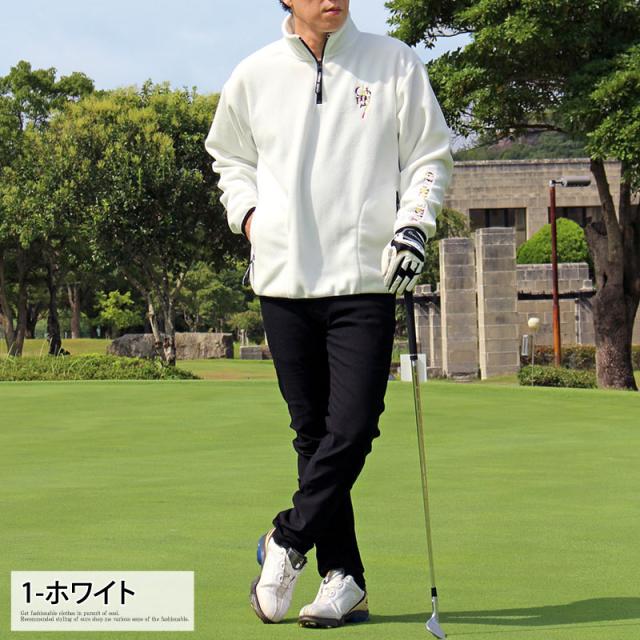 M~XXL 新作 ゴルフ フリースジャケット メンズ ゴルフウェア スニードジャック ワンポイント 刺繍 GIORNO SEVEN ジョルノセブン 暖かい アウター ブルゾン プルオーバー ハーフジップ トップス 秋冬 送料無料