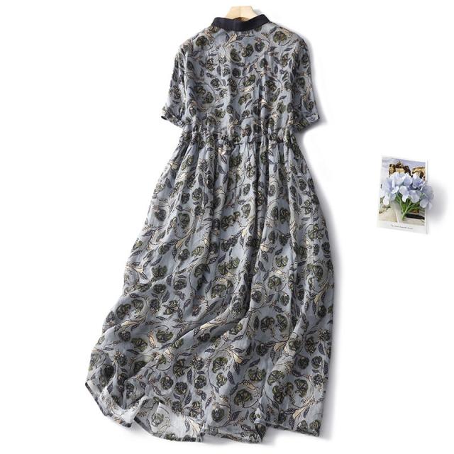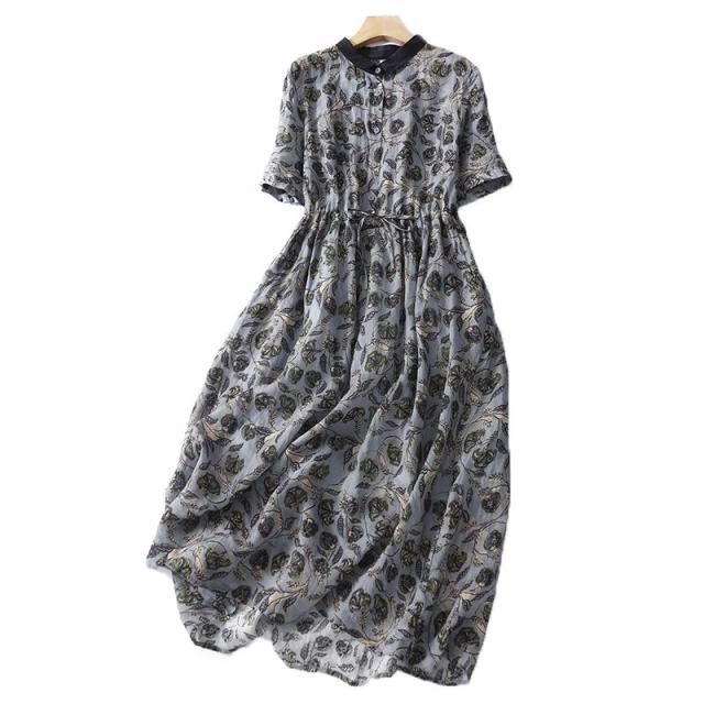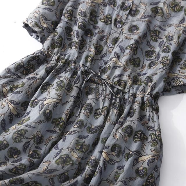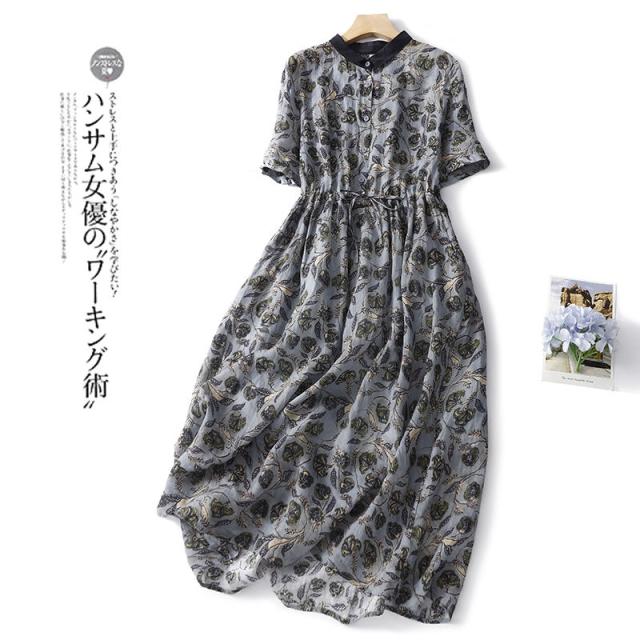 ロングワンピース 半袖 きれいめ 体型カバー 花柄 シャツワンピース ロングワンピ ロング 大きいサイズ 小花柄 マタ二ティ Aライン ウェストリボン 春 夏