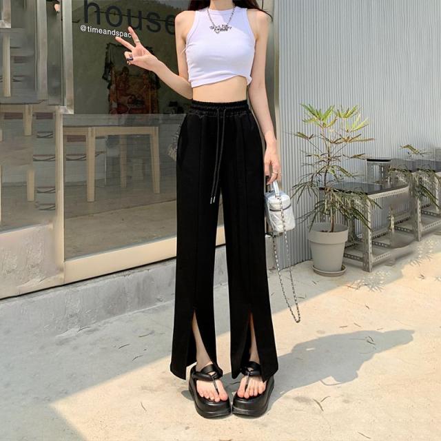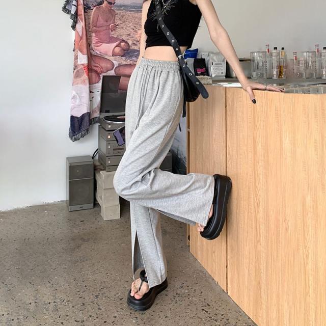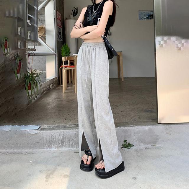 スウェットパンツ スリット ソフトワイドパンツ フロントスリットパンツ レディース ウエストゴム リラックスパンツ スエット ロング丈 美脚 脚長 ボトムス 大人カジュアル 抜け感