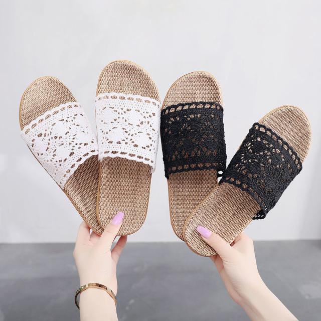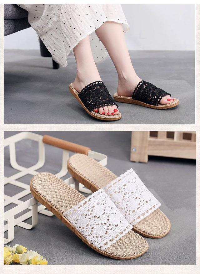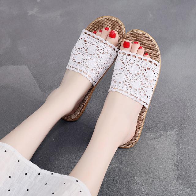 スリッパ レース編み リネン 夏用 洗える おしゃれ レディース ルームシューズ つっかけ ミュール 室内 屋内 室内履き 外履き
