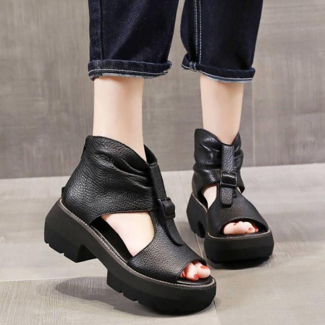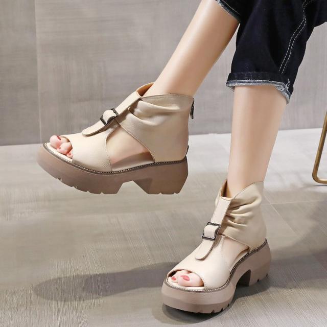 ブーツサンダル ペタンコ 厚底サンダル フラットシューズ 厚底シューズ ショートブーツ コンフォート オープントゥ 夏用 通気性 カジュアル 春 靴 パンプス オシャレ 美脚 ブラック ベージュ