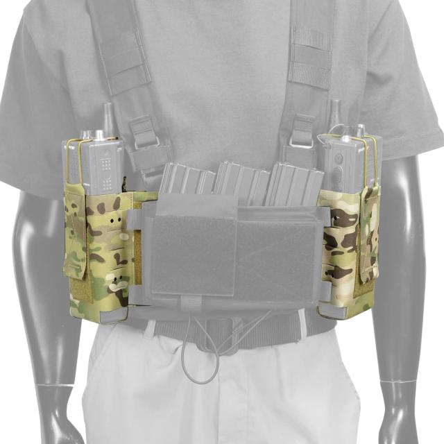 左右にポーチが設置されており、軍用無線機やM4マガジンを2本収納可能。