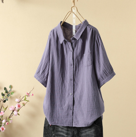 ガーゼ シャツ 2重ガーゼ シャツブラウス レディース 半袖 トップス 春 夏 ガーゼシャツ 羽織り 大人 カジュアル ナチュラル ダブルガーゼ 体型カバー ゆったり ガーゼコットン