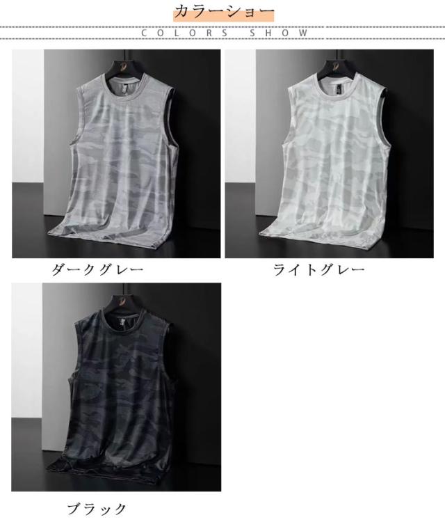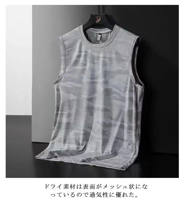 2枚セット タンクトップ メンズ ノースリーブ トップス ドライ メッシュ 接触冷感 ストレッチ 吸汗 速乾 インナー 男性 メッシュtシャツ 迷彩柄 伸縮性 ランニングシャツ ストリート ジム トレーニングウェア スポーツ カジュアル 大きいサイズ 春服 春 夏服 送料無料