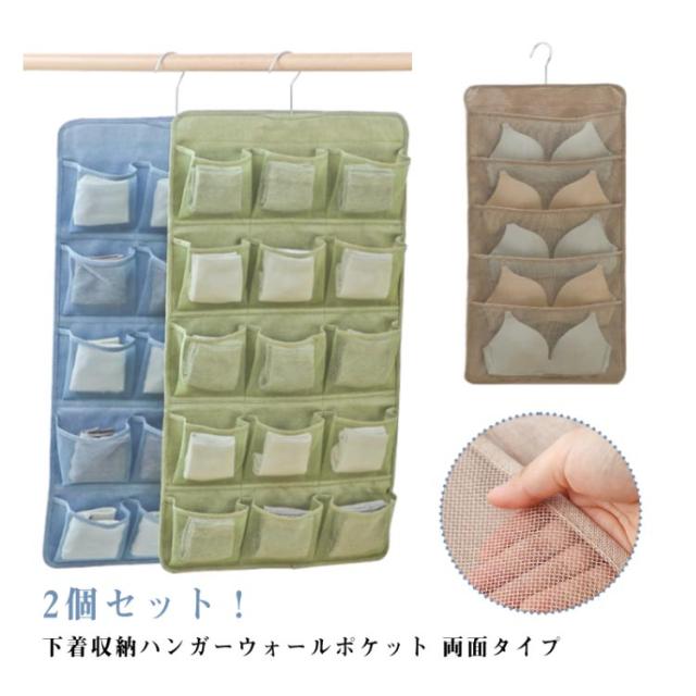 2個セット 下着 収納 仕切り ウォールポケット ハンガー式 20ポケット 省スペース 水洗いOK 吊り下げ収納 ブラの型崩れ防止 おしゃれ ブラケース 衣類 収納 仕切り 壁掛け 収納ボックス 小物 靴下 収納 防水 大容量 寝室収納 プレゼント