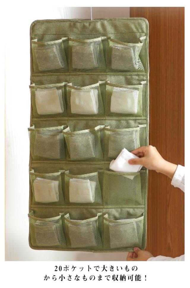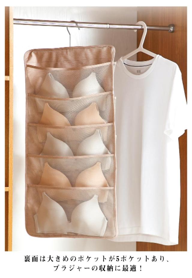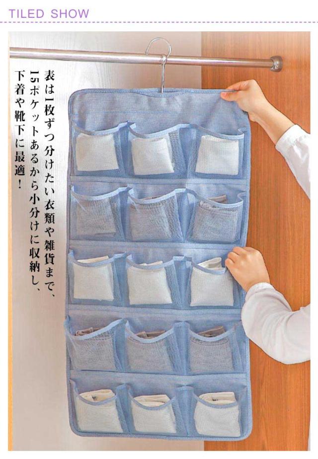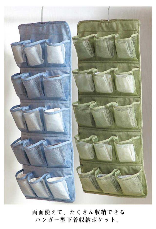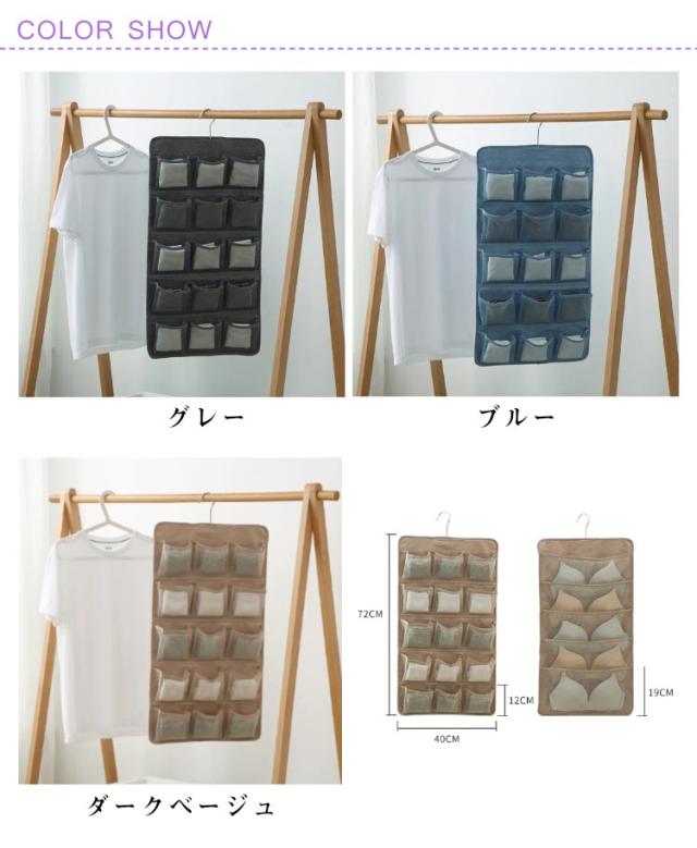 | 2個セット!下着収納ハンガーウォールポケット 両面タイプ 両面使えて、たくさん収納できるハンガー型下着収納ポケット。 20ポケットで大きいものから小さなものまで収納可能! 表は1枚ずつ分けたい衣類や雑貨まで、15ポケットあるから小分けに収納し、下着や靴下に最適! 裏面は大きめのポケットが5ポケットあり、ブラジャーの収納に最適! ポケットは通気性のあるメッシュを採用。湿気も気にならない。 | |