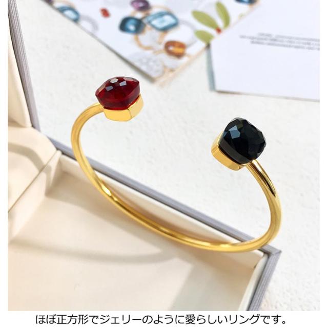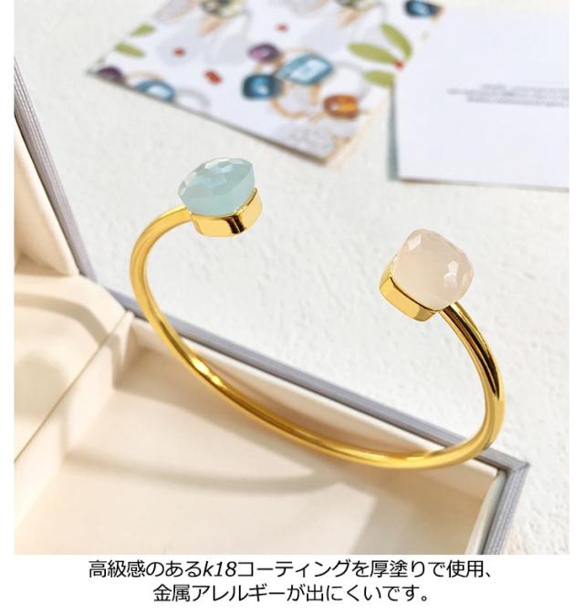 ブレスレット 真鍮 人工水晶 18k コーティング クオーツブレスレット おしゃれ かわいい シンプル クオーツ リング ヌードブレスレット スクエア リング 人工水晶 シトリン アメジスト クリスタル ペリドット 送料無料