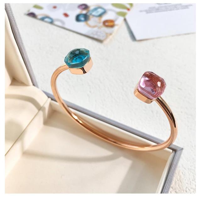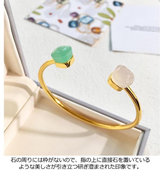 | 人工水晶とk18仕上げコーティングでお作りするシンプルなブレスレット。 スタイリッシュに大人のクラス感をアップ。 人工水晶の宝石が魅力的な輝きを放つ、おしゃれなジュエリー。 スクエアがおしゃれでダイレクトに石の美しさを楽しめます ほぼ正方形でジェリーのように愛らしいリングです。 石の周りには枠がないので、指の上に直接石を置いているような美しさが引き立つ研ぎ澄まされた印象です。 高級感のあるk18コーティングを厚塗りで使用、金属アレルギーが出にくいです。 20代、30代、40代、50代と幅広い年代にぴったり似合う、上品で贅沢な高級感がおすすめです。 普段使いや特別な装いに、シーンを選ばずお使いいただけます。 | |