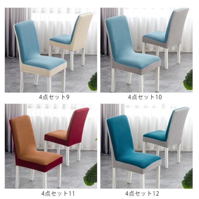 チェアカバー 背もたれ付き 4枚入り ダイニングチェアカバー 椅子カバー いす 背もたれ 厚手 オフィスチェア デスクチェアー ストレッチ ダイニングチェア チェアーカバー キズ防止 汚れ防止 バイカラー