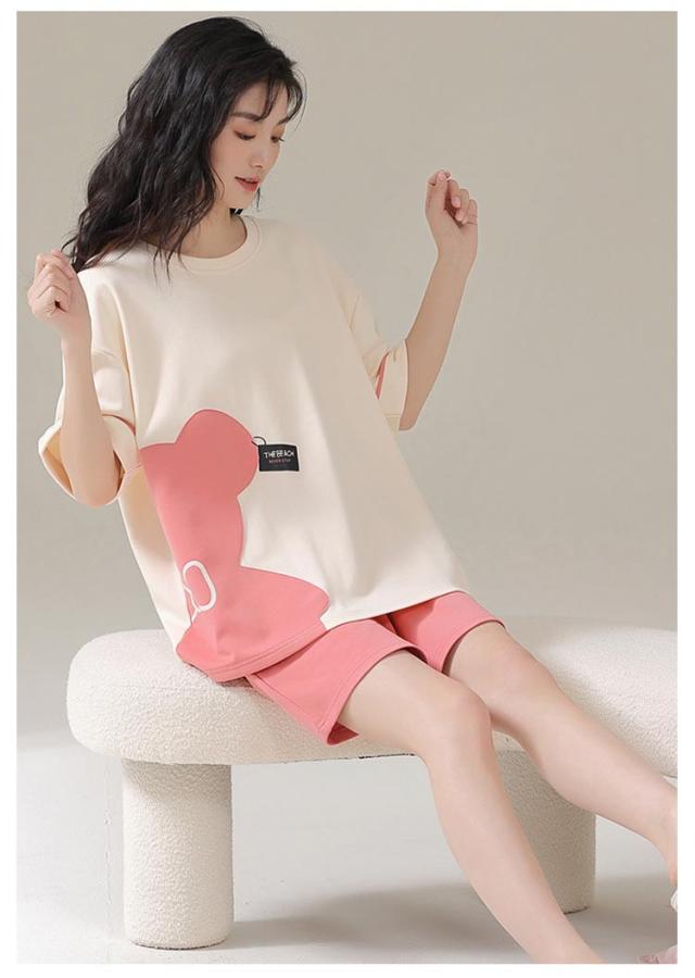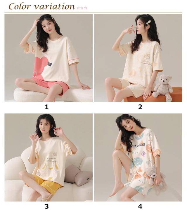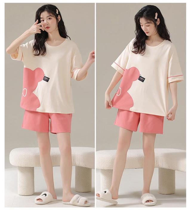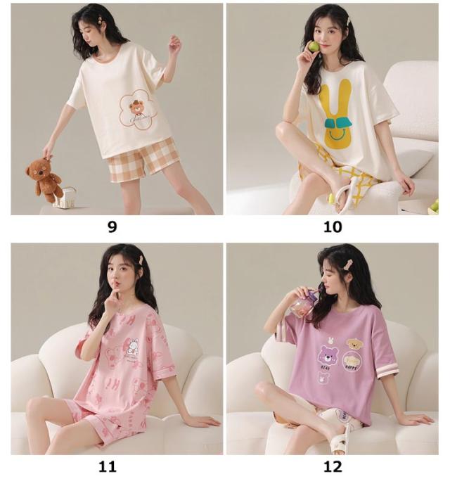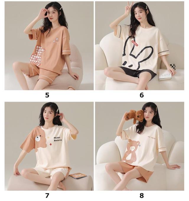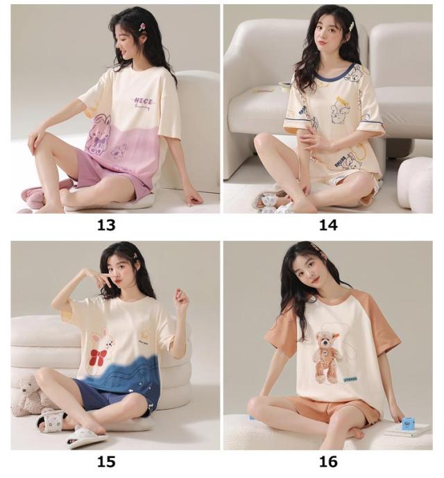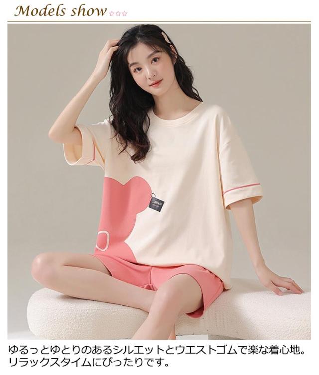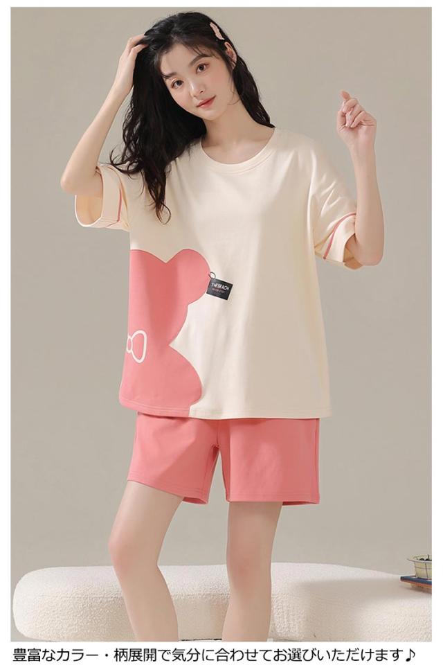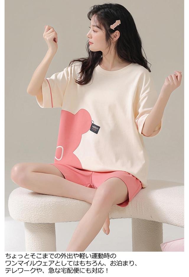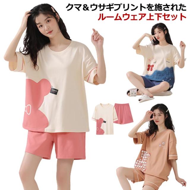 ルームウェア 上下セット レディース 綿 パジャマ くま クマ ウサギ かわいい 半袖 トップス 短パン ショートパンツ パンツ 韓国 部屋着 ワンマイルウェア 上下2点セット 薄手 大きいサイズ 学生 女の子 外出 可愛い 秋 春 夏 春夏 【送料無料】