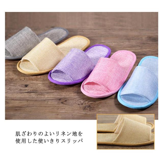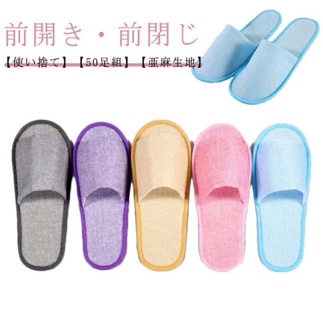 【50足組】使い捨てスリッパ リネン 亜麻生地 前開タイプ 前あき 使い捨て フリーサイズ 室内履き スリッパ 来客用 携帯用 病院 ホテル 旅館 施設 住宅展示場 イベント おすすめ 防災用品 旅行 宿泊 家族旅行 修学旅行 合宿 引っ越し 通気性 水洗い 送料無料