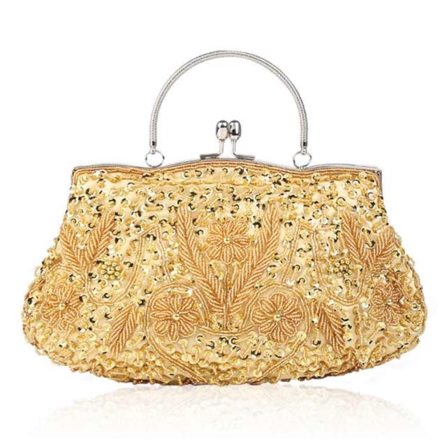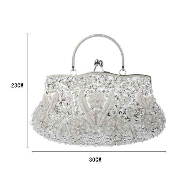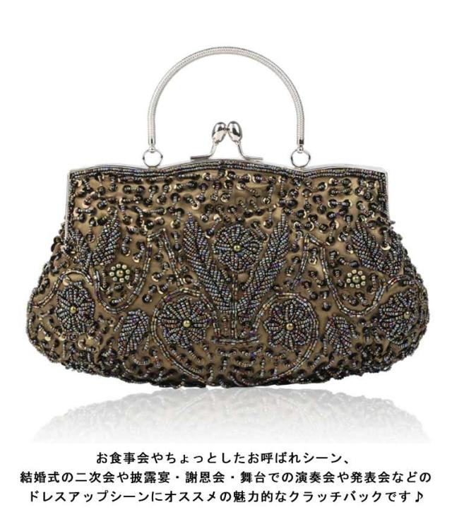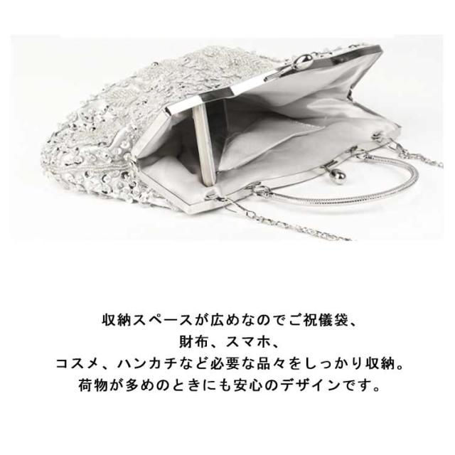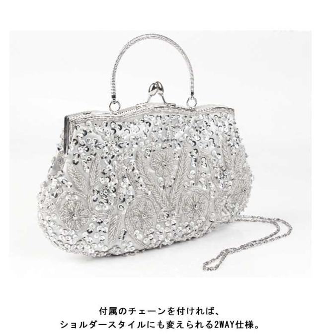 全12色 パーティーバッグ ビーズ 刺繍 結婚式 バッグ 大きめ ハンドバッグ がま口 クラッチバッグ ショルダー 2way レディース パーティ バッグ 二次会 披露宴 謝恩会 お呼ばれ 演奏会 発表会 黒 紺 白 シルバー おしゃれ エレガント 【送無】