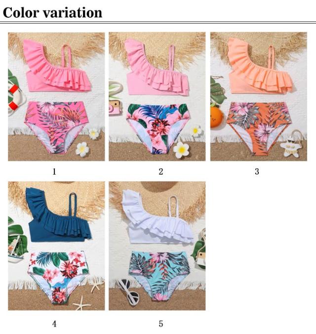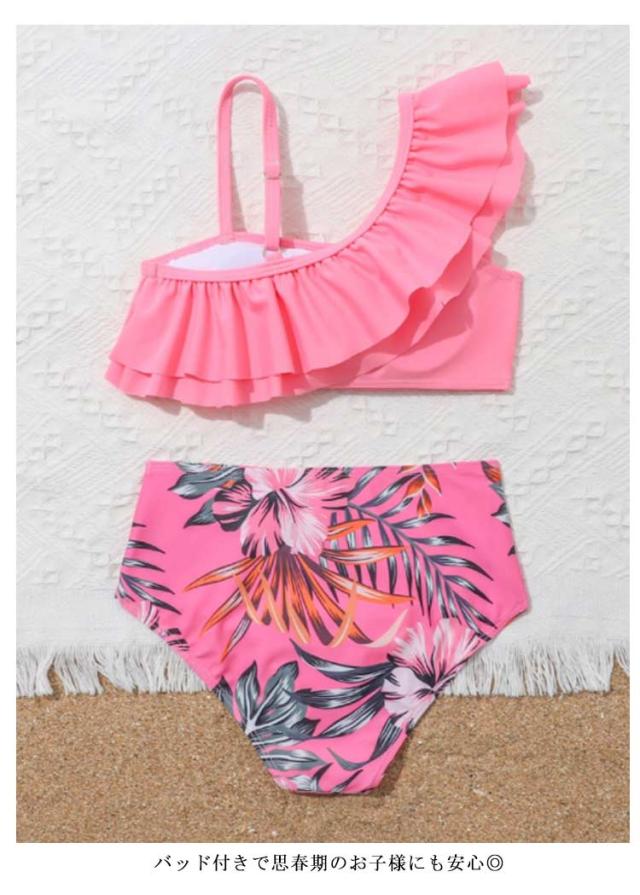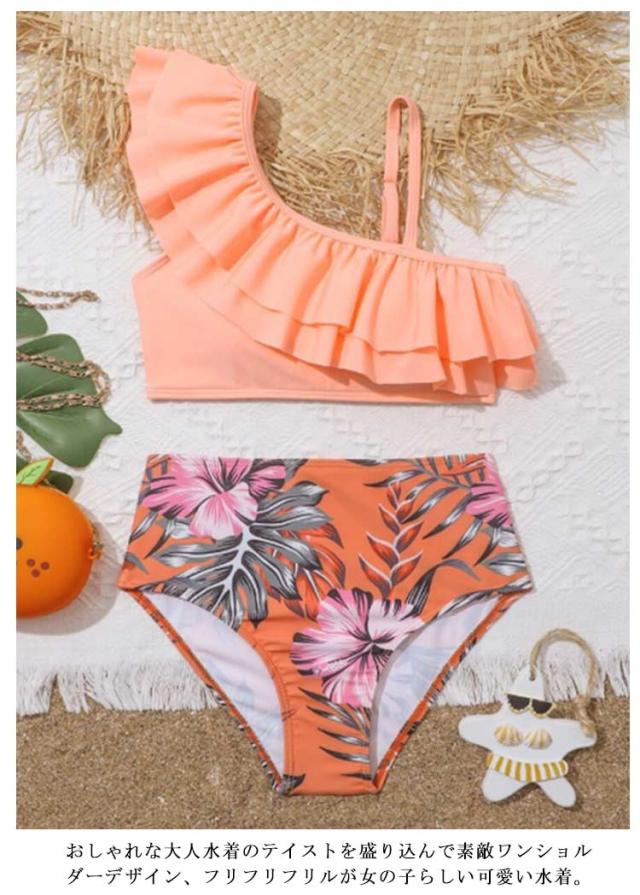ワンショルダー水着 セパレート 女の子 ジュニア 水着 小学生 中学生 パッド付き フリル パンツ 2点セット 130 140 150 160 キッズ スイムウェア 可愛い ビキニ 女児 遊び着 タンキニ ビーチ 海