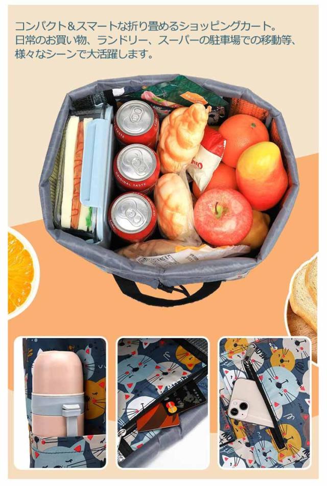 ショッピングカート 30L 折りたたみ 4輪 横押し 軽量 保冷 保温 ショッピングバッグ キャスター付き 巾着 キャリーバッグ キャリーカート 買い物カート ショッピングキャリー エコバッグ 防水 撥水加工 敬老の日 プレゼント 保冷バッグ お買い物