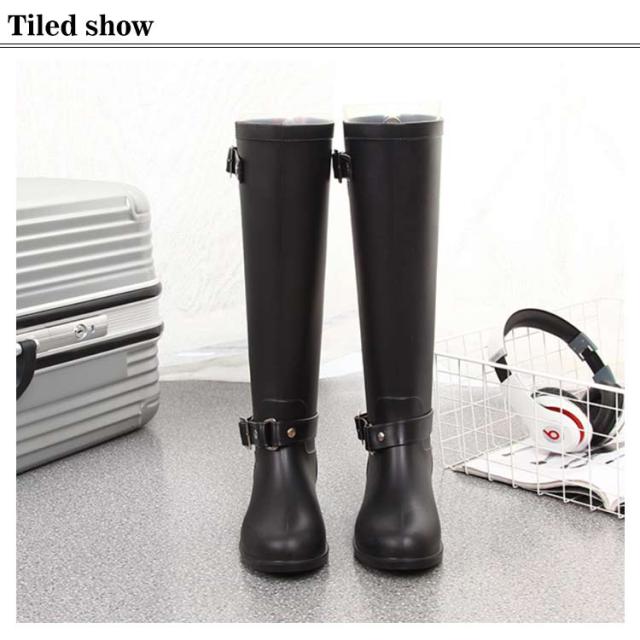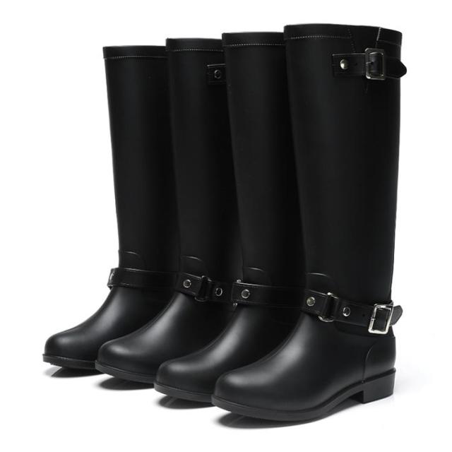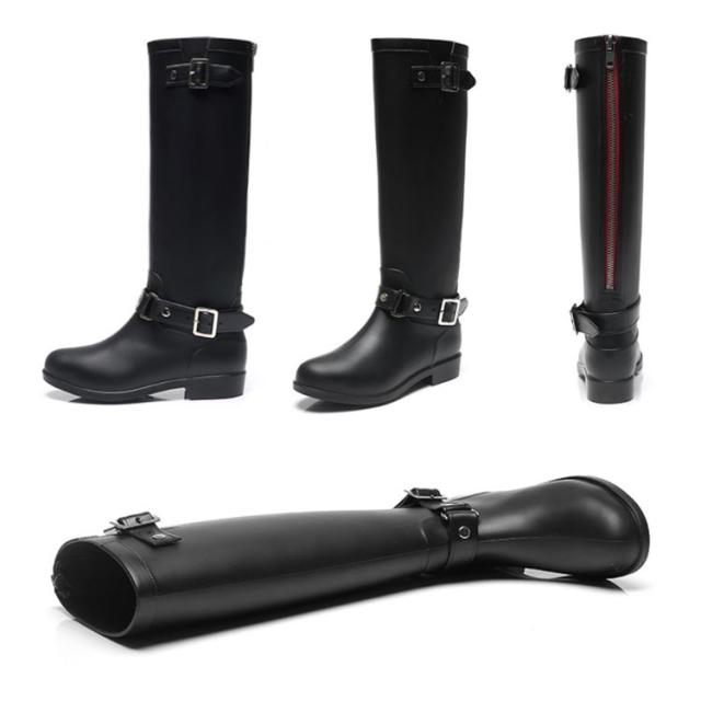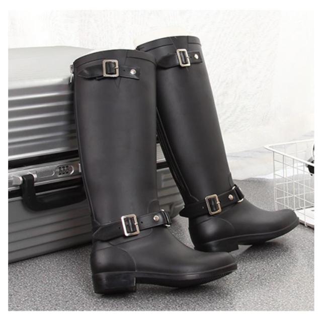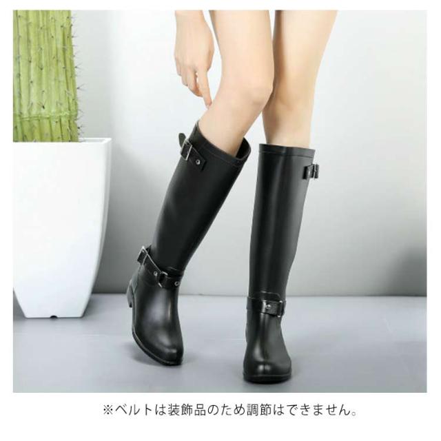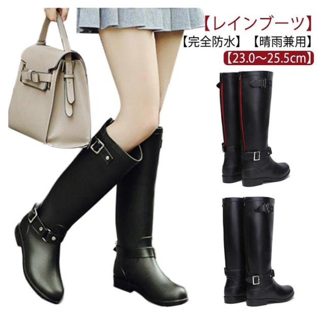 完全防水 レインブーツ レディース ロング丈 サイドベルト 雨靴 長靴 台風 豪雨 ロング レインシューズ おしゃれ ロングブーツ 防水 レイン ブーツ 大雨 美脚 梅雨対策 防滑 履きやすい ブラック 雪 23.0-25.5cm ジョッキーブーツ きれいめ 防寒 滑りにくい 黒