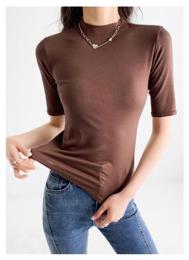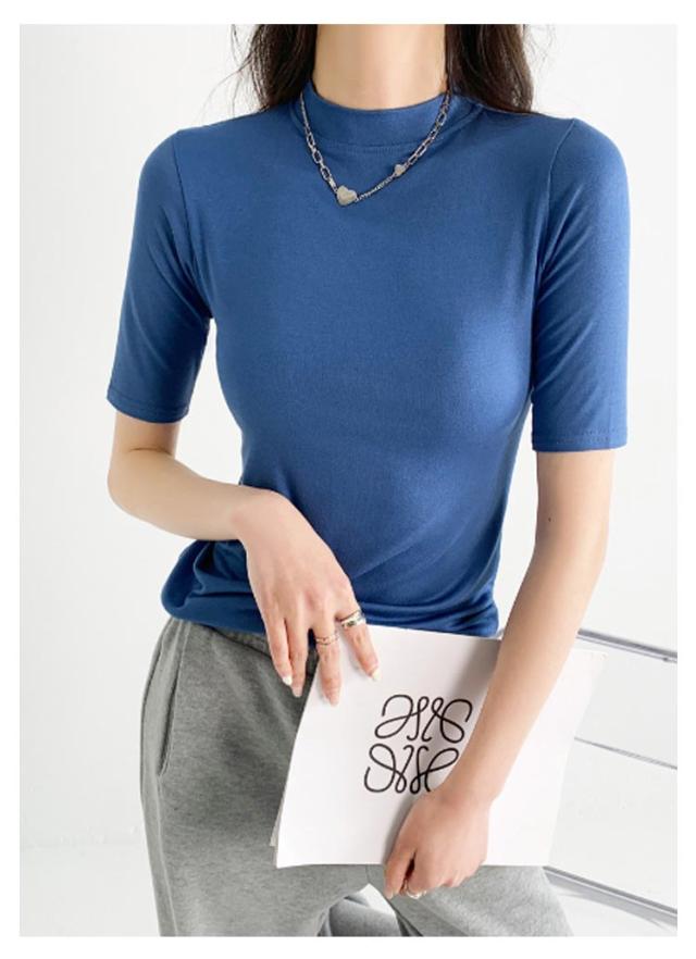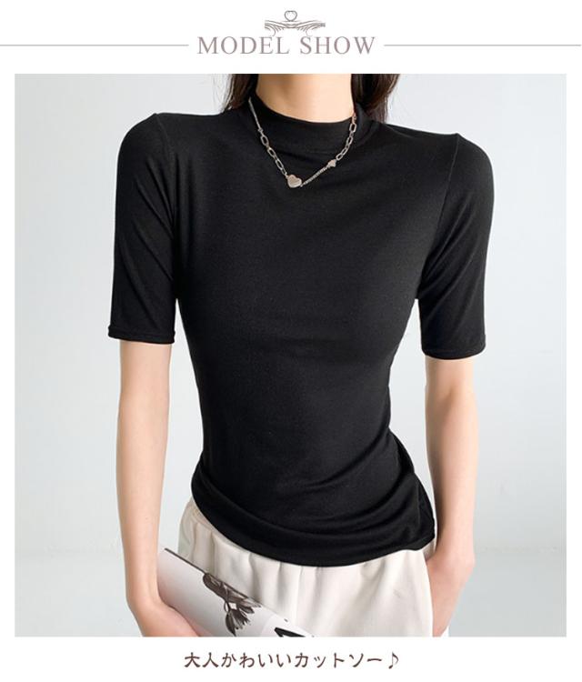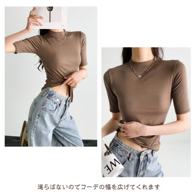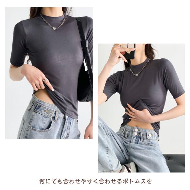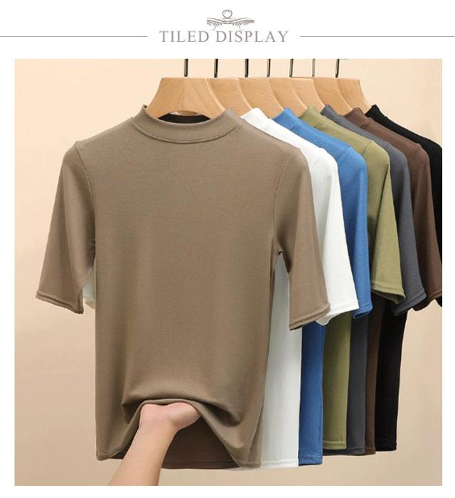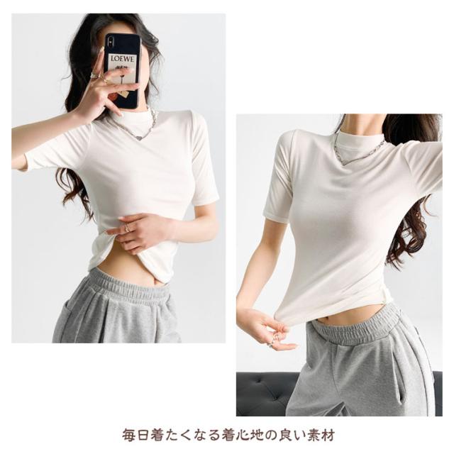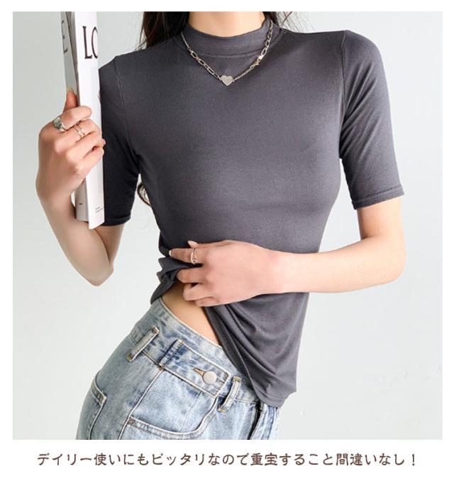 【2枚セット】レディース トップス 半袖 Tシャツ 五分袖 春 夏 秋 Tシャツ ゴルフ ハイネックtシャツ 日焼け対策 無地 カットソー 半袖tシャツ 薄手 フィット スリム トレーナー 20代 30代 40代 OL 送料無料
