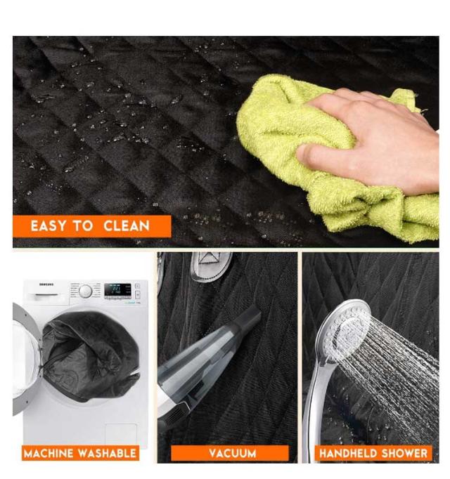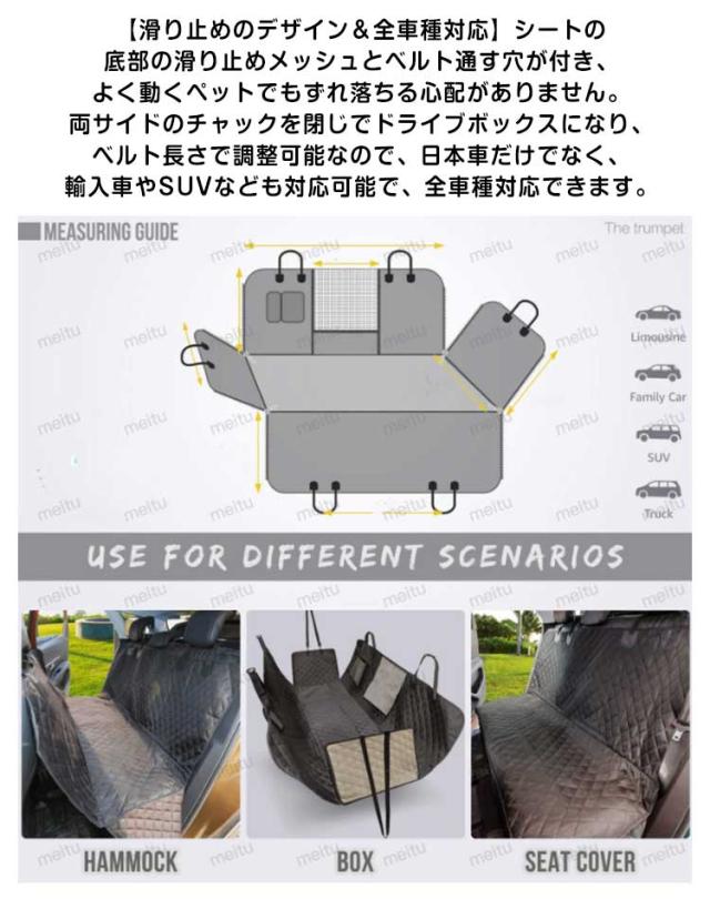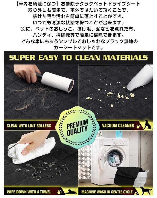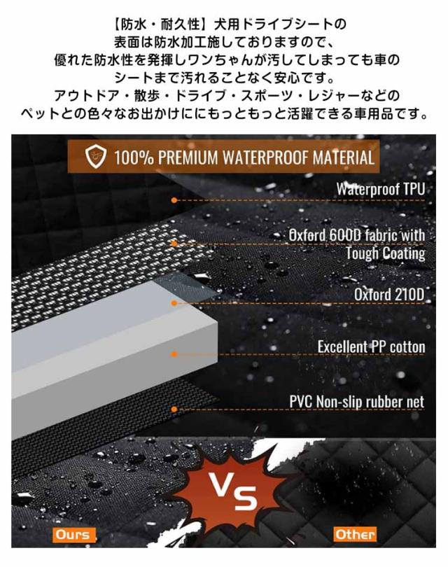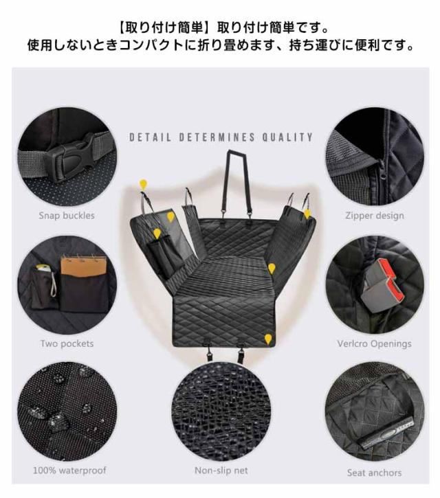 | ペット用ドライブシート 【可視メッシュ窓とポッケト付き】ペット車用シートには、メッシュ窓付きなので、空気の循環に役に立ち、後部座席もエアコンの効果がであります。その上、前席から愛犬をよくみえるから、とても安心です。また、ポケットが付いていますので、ペット用品、ティッシュなどの日常用品を置いできます。 【滑り止めのデザイン&全車種対応】シートの底部の滑り止めメッシュとベルト通す穴が付き、よく動くペットでもずれ落ちる心配がありません。両サイドのチャックを閉じでドライブボックスになり、ベルト長さで調整可能なので、日本車だけでなく、輸入車やSUVなども対応可能で、全車種対応できます。 【取り付け簡単】取り付け簡単です。使用しないときコンパクトに折り畳めます、持ち運びに便利です。 【防水・耐久性】犬用ドライブシートの表面は防水加工施しておりますので、優れた防水性を発揮しワンちゃんが汚してしまっても車のシートまで汚れることなく安心です。アウトドア・散歩・ドライブ・スポーツ・レジャーなどのペットとの色々なお出かけににもっともっと活躍できる車用品です。 【車内を綺麗に保つ】お掃除ラクラクペットドライブシート 取り外しも簡単で、車外ではたいて頂くことで、抜けた毛や汚れを簡単に落とすことができ、いつでも清潔な状態を保つことが出来ます。別に、ペットのおしっこ、抜け毛、泥などを濡れた布、ハンディ、掃除機等で簡単に掃除できます。どんな車にもあうシンプルでおしゃれなブラック無地のカーシートマットです。 | |