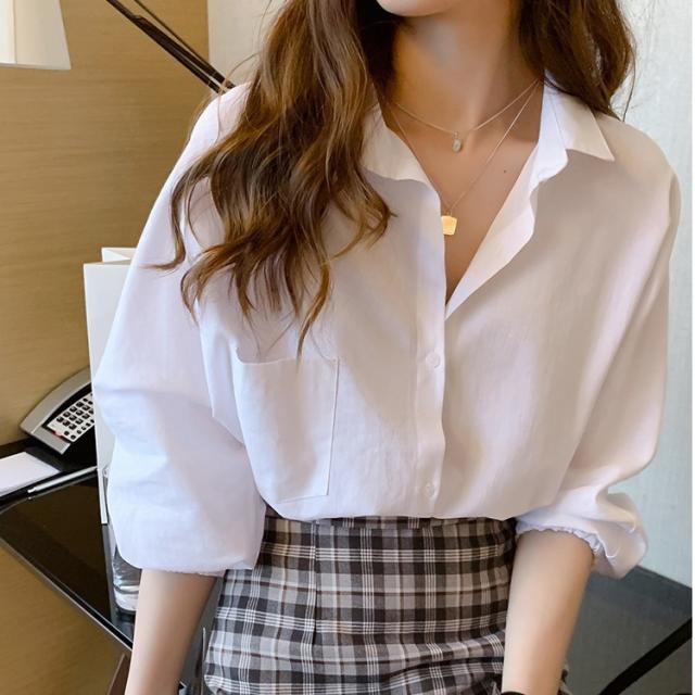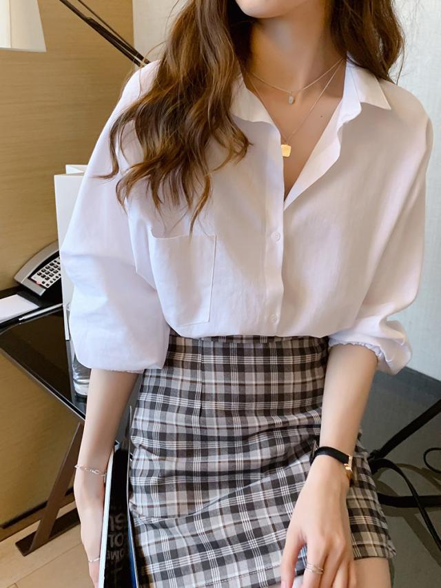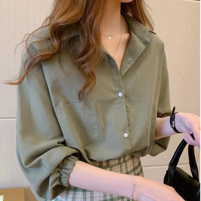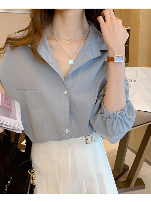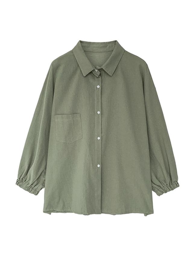 シャツ 綿 長袖シャツ レディース 春 秋 トップス 長袖 リブ ランタンスリーブ 着回し 無地 ゆったり カジュアル おしゃれ 通勤