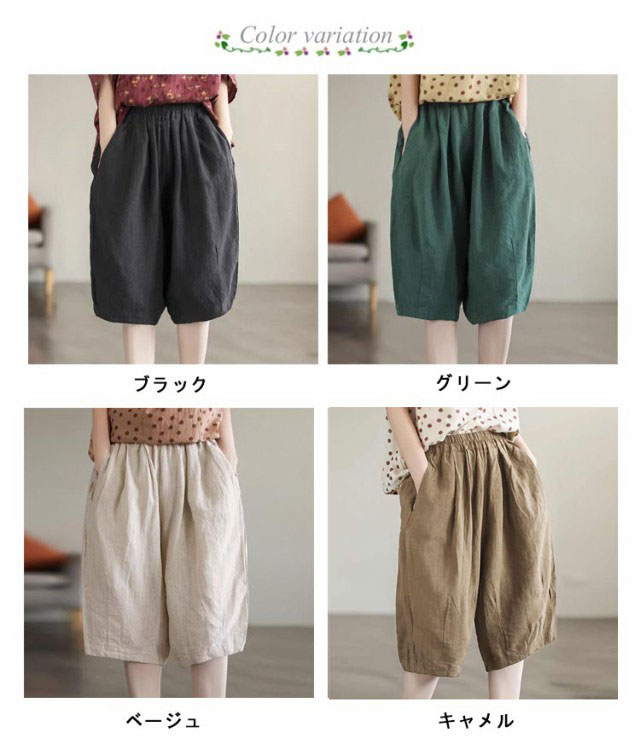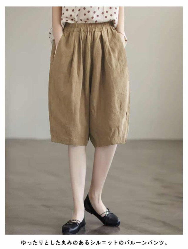 ワイドパンツ 夏 涼しい サルエルパンツ レディース ゆったり ハーフパンツ 5分丈 バルーンパンツ リネンパンツ 綿麻パンツ 半ズボン リネン ボトムス 可愛い ボリューム 部屋着 ルームウェア リラックスパンツ