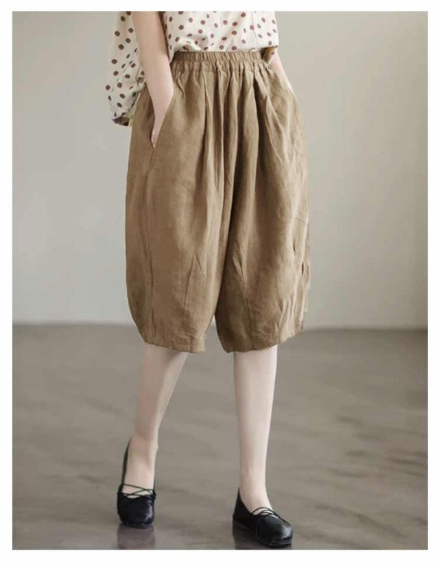 | ゆったりとした丸みのあるシルエットのバルーンパンツ。 通気性抜群で涼しいリネン素材にひざ丈設計、真夏でも快適な穿きこ心地を実現。 トップスをタイトにボトムスにボリュームをもたせたモード感あふれる着こなしがトレンド感があってお勧めです。 ゆったりとはけるまるみなのでシンプルアイテムと合わせてデイリーにも活躍します。 | |