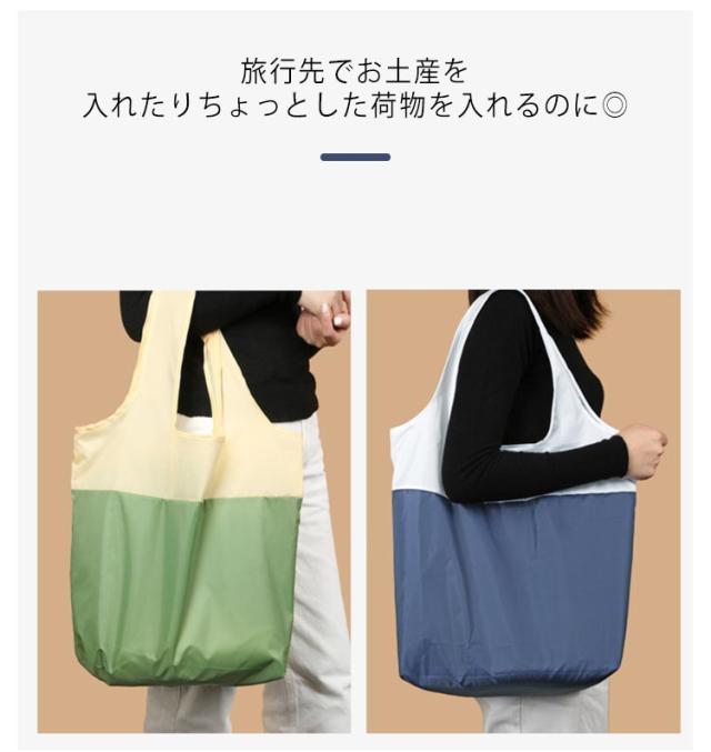 | トートにも!肩掛けにもできちゃう優れもの! コンパクトに折り畳めるから、普段のバッグに入れておくと重宝します! おでかけ先やお仕事帰りにスーパー等でお買い物をした時に◎ 旅行先でお土産を入れたりちょっとした荷物を入れるのに◎ 突然の雨にも対応!撥水加工なので、ビーチやアウトドアでも大活躍◎ 折り畳んだあと、手のひらぐらいの大きさで携帯に便利なエコバッグ。 | |