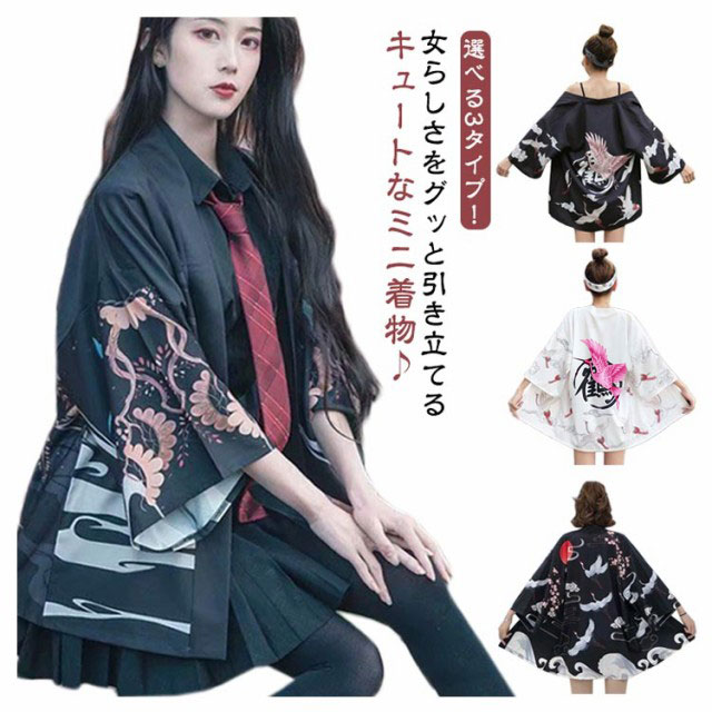 夏祭り 浴衣 甚平 レディース 花火大会 カーディガン 羽織 和柄 じんべい ジンベイ じんべえ 薄手 7分袖 春夏 秋 コスプレ レディース ゆかた 和服 ミニ着物重ね着 コスチューム セクシー つる コスプレ衣装 パーティー イベント 女性 ギフト プレゼント 送料無料