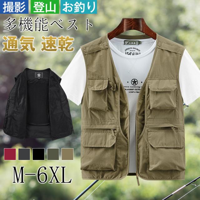 ベスト メンズ 春夏 メッシュベスト アウトドア 大きいサイズ メンズ アウトドアベスト 軽量 通気 速乾 フィッシングベスト お釣り 山歩き お釣り 撮影 登山服 ワーク 多ポケット ミリタリー 作業着 農業 涼しい ポケット 父の日