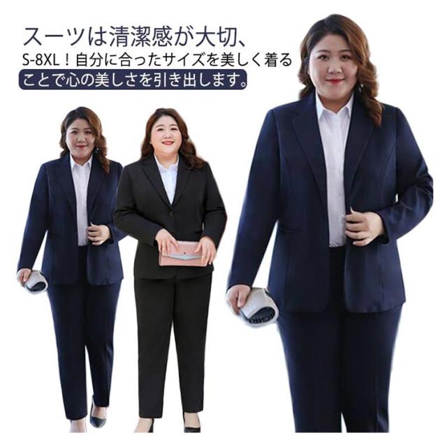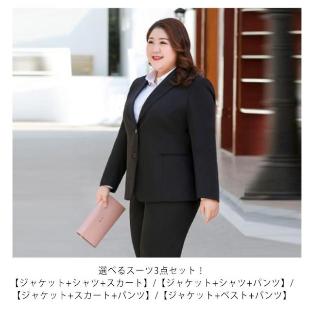 選べる3点セット!スーツ レディース フォーマル 大きいサイズ セットアップ ビジネススーツ パンツ スカート フォーマル パンツスーツ 通勤 就活 OL 事務服 ビジネス リクルートスーツ ジャケットあり 転職 面接 卒業式 ブラック ネイビー S-8XL