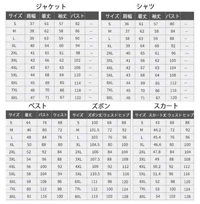 | スーツは清潔感が大切、S-8XL!自分に合ったサイズを美しく着ることで心の美しさを引き出します。 穿き心地もおしゃれ度も抜群のアイテムです。 シワになりにくい上質素材を使用しています。 着やすくしっかりした生地。細部までこだわった縫製技術。 選べるスーツ3点セット!【ジャケット+シャツ+スカート】/【ジャケット+シャツ+パンツ】/【ジャケット+スカート+パンツ】/【ジャケット+ベスト+パンツ】 ビジネス・オフィススタイルとしてご活躍頂けます。通勤/就活/面接/お受験/入学式/同窓会/卒業式/OL 仕事/ビジネス/事務服/制服/七五三/お宮参り/冠婚葬祭/お受験/入園入学/参観日に。 社会人にも学生にも定番のスーツセットです。 | |