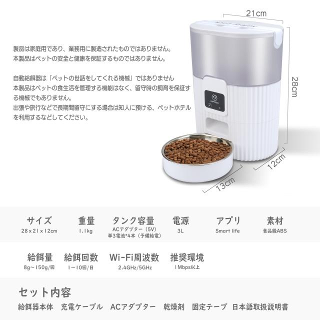 【2025年モデル】自動給餌器 猫 犬用 3L Wi-Fi対応 タイマー定量給餌 遠隔操作 手動給餌可 ステンレス皿付き 簡単操作 お手入れ簡単 自動餌やり機