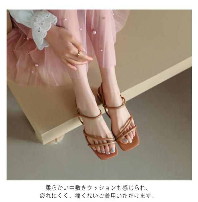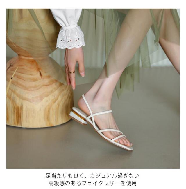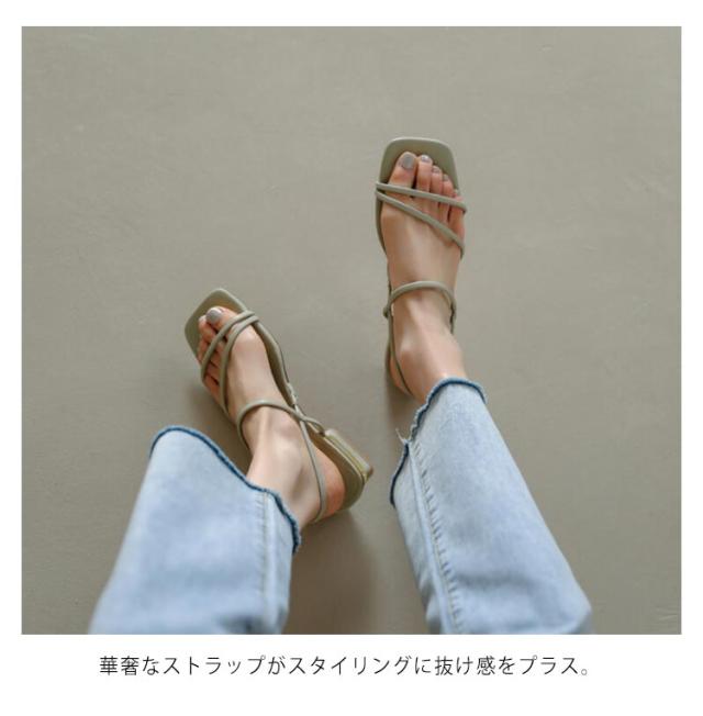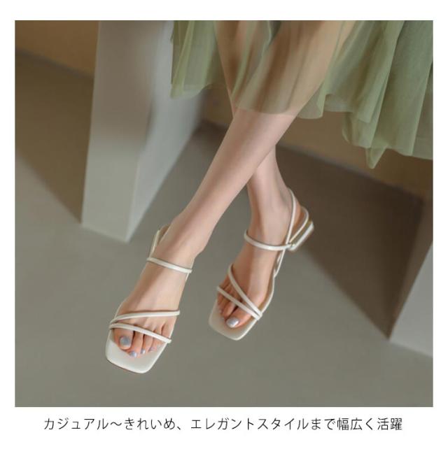 | 華奢なストラップですっきり見えするトレンドサンダル! 華奢なストラップがスタイリングに抜け感をプラス。 足元をすっきりとした印象に仕上げてくれるスクエアトゥデザイン 柔らかい中敷きクッションも感じられ、疲れにくく、痛くないご着用いただけます。 足当たりも良く、カジュアル過ぎない高級感のあるフェイクレザーを使用 カジュアル〜きれいめ、エレガントスタイルまで幅広く活躍 | |