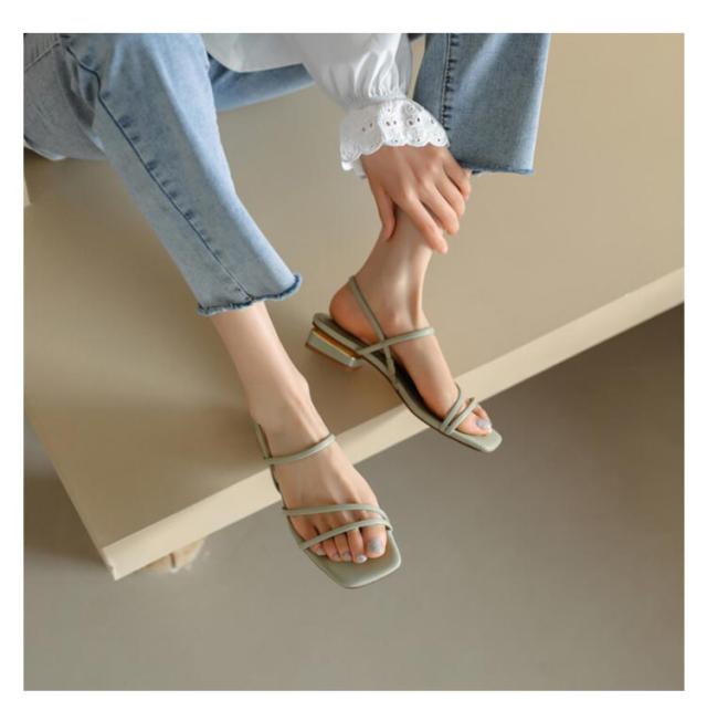 ローヒール フラット 細ストラップ サンダル スクエアトゥ ぺたんこ レディース 痛くない ヒール3cm ナローストラップ 美脚 フラット 歩きやすい 柔らか 脱げない 華奢 きれいめ コンフォートサンダル グリーン ストラップサンダル